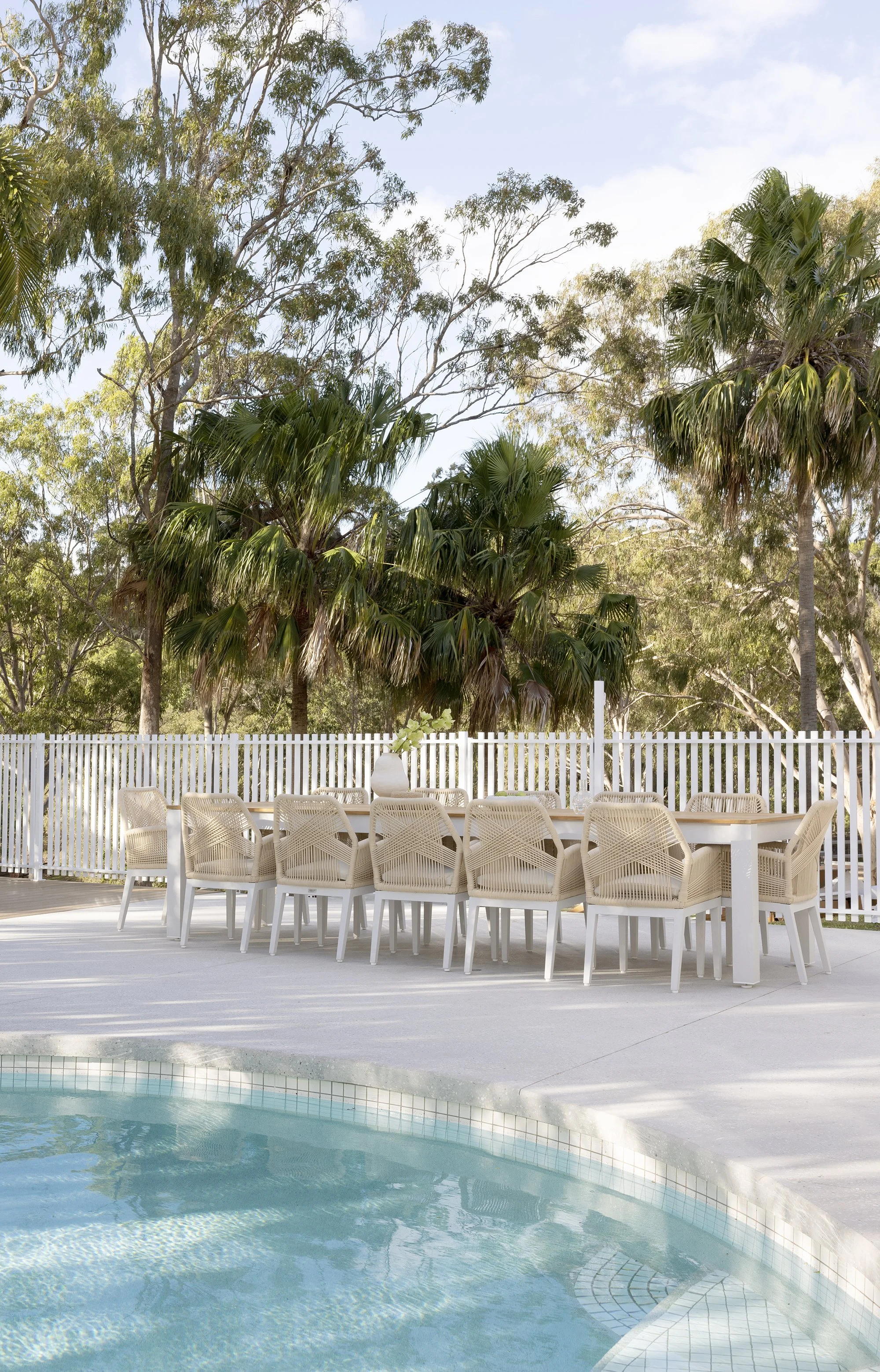 It’s important to choose materials that will hold up to the weather. Aluminium, known for its lightweight and rust-resistant qualities, is ideal for facing the diverse Australian climate. For a natural look, Teak wood is a great choice. Celebrated for its strength and natural pest resistance, Teak ages gracefully into a sophisticated silver-grey, adding a touch of elegance to your outdoor setting as the seasons change.
