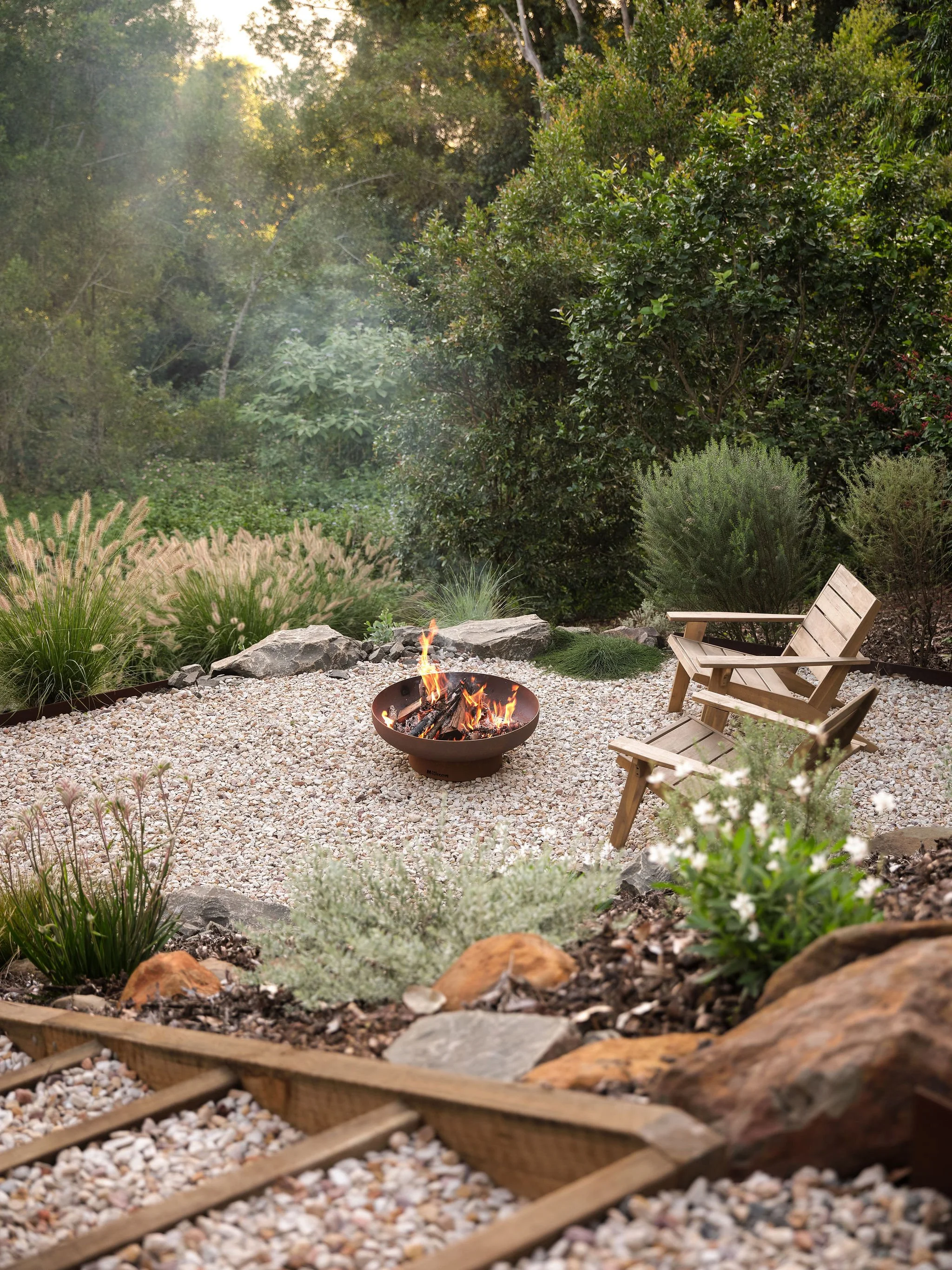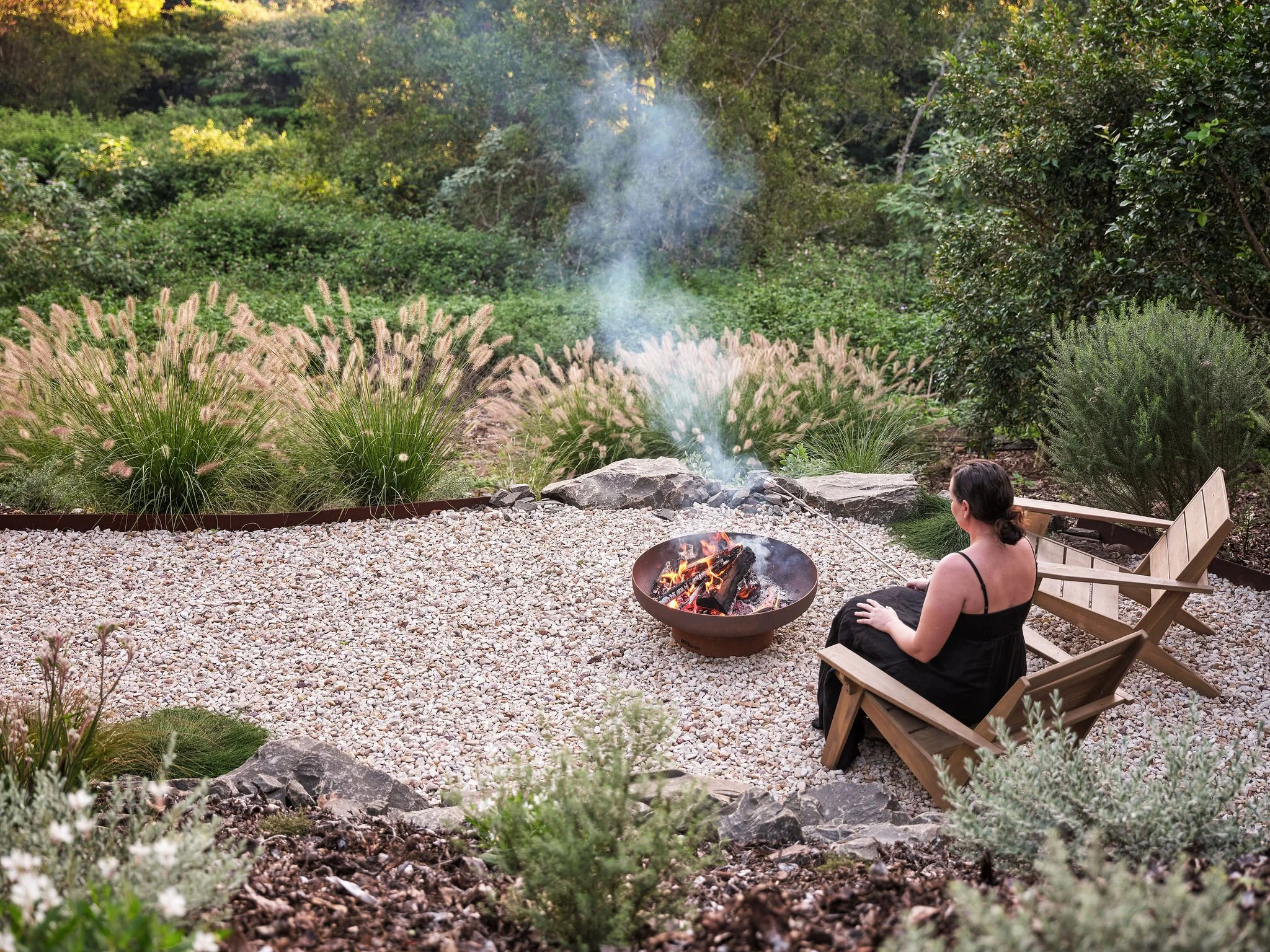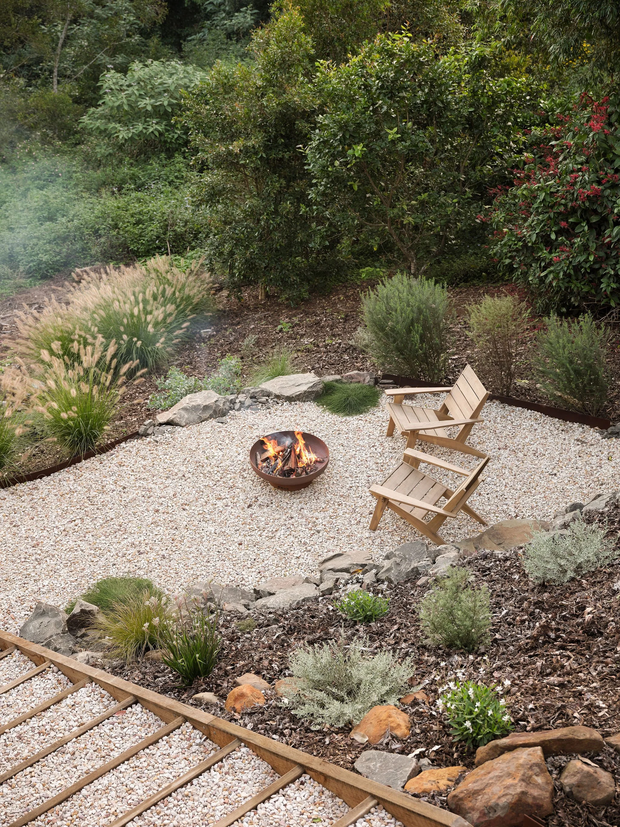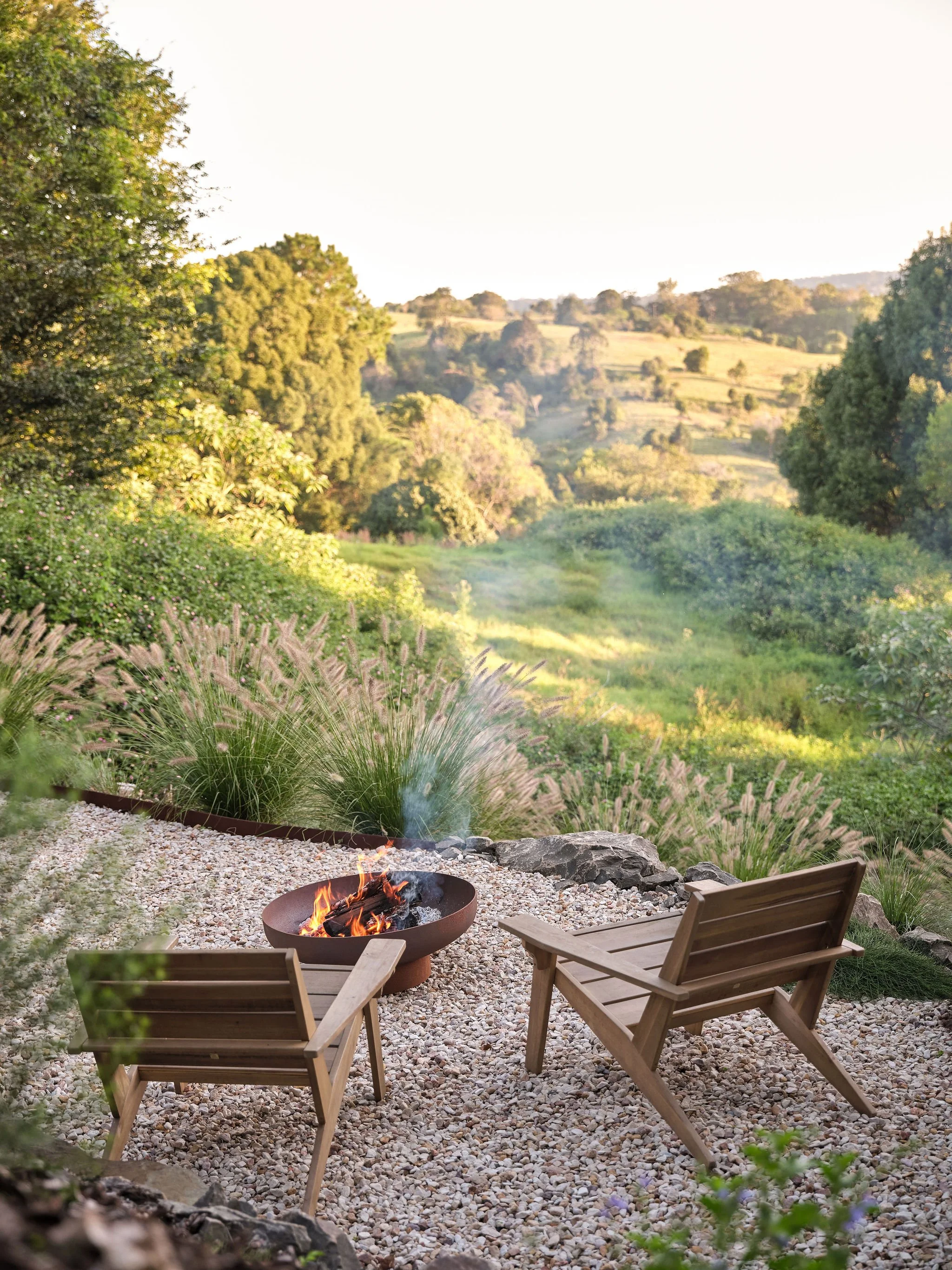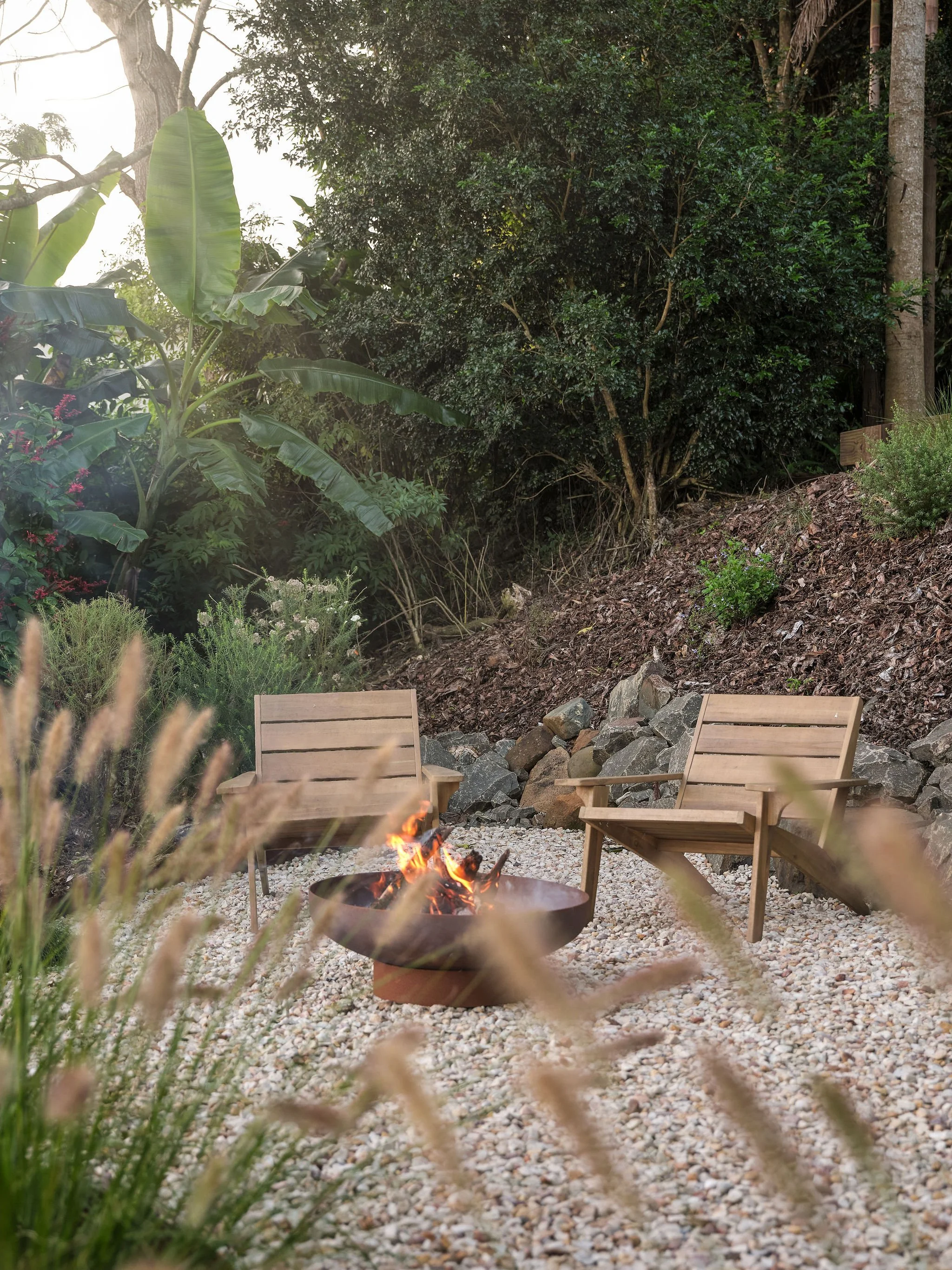The weather is cooling here in Maleny – here’s a look at our new Milkcan fire pit and landscaping at our Oak Ridge Cottage.