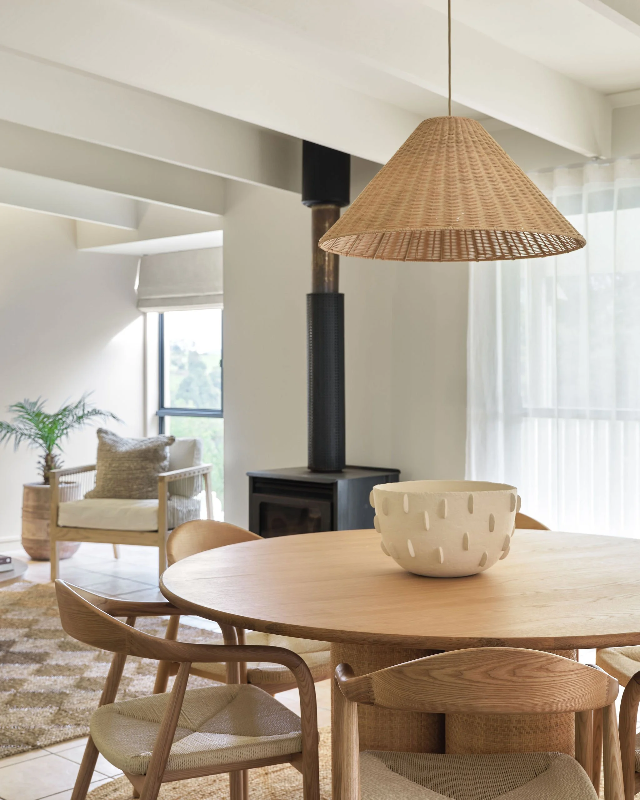 To ground the dining table I chose the ‘Sayulita’ round jute rug from Miss Amara – this is the 2.4m diameter size – it’s just right for having the chairs sit comfortably on it (plus it helps to hide those tiles which I don’t love)!
