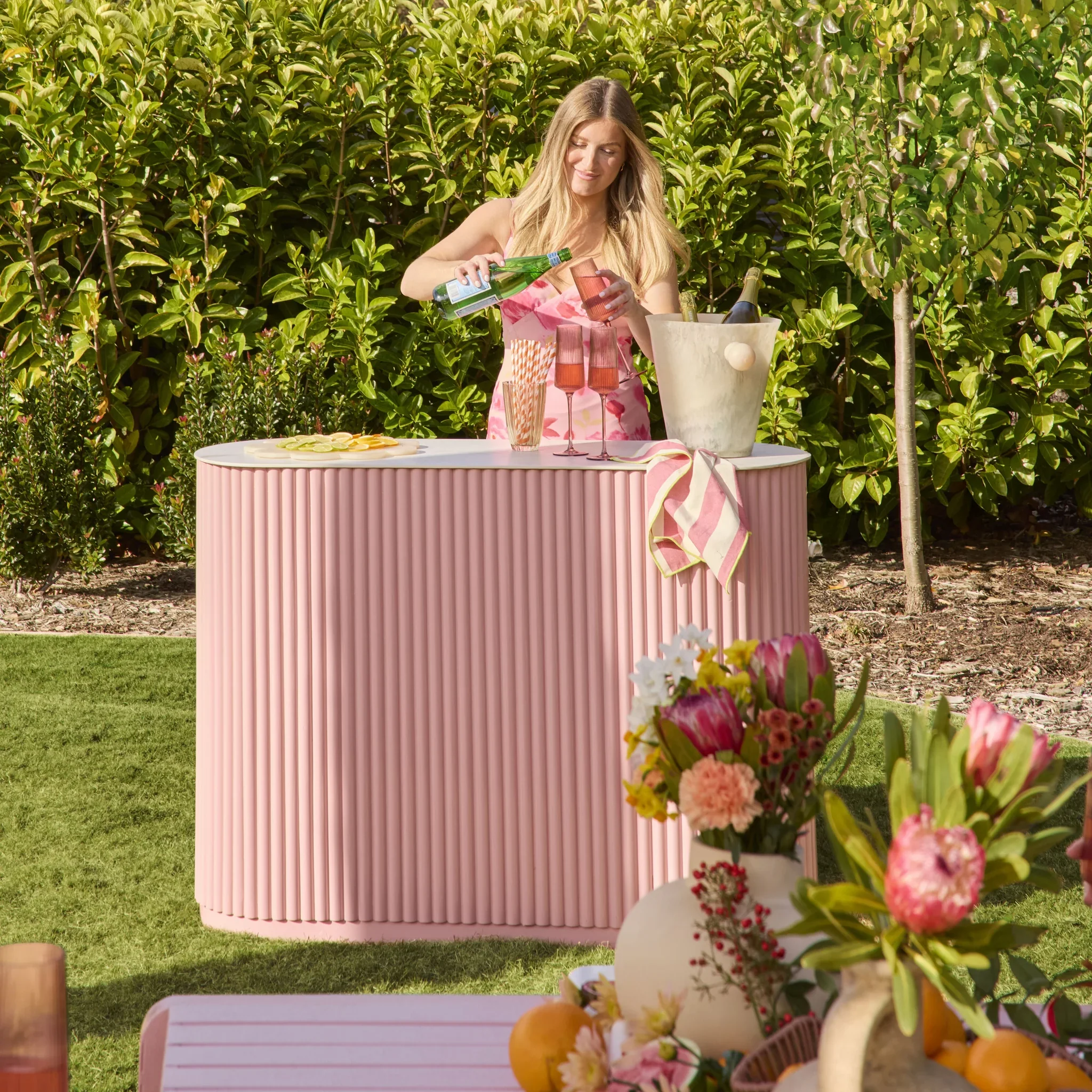 The Kace dining table and bench seat is a classic summer staple and comes in white, smoke green and blue haze – along with pink of course. The price point is also great for those styling their space on a budget.