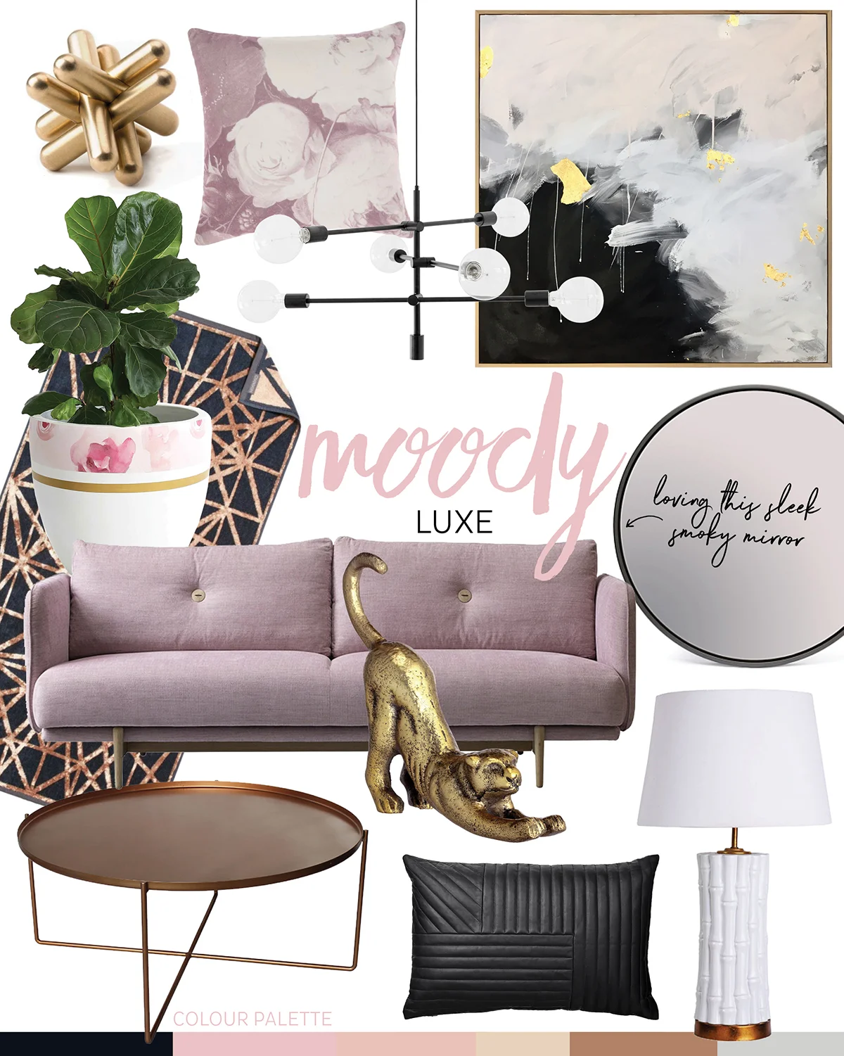 MIRROR / SOFA / COFFEE TABLE / PANTHER / BLACK CUSHION / LAMP