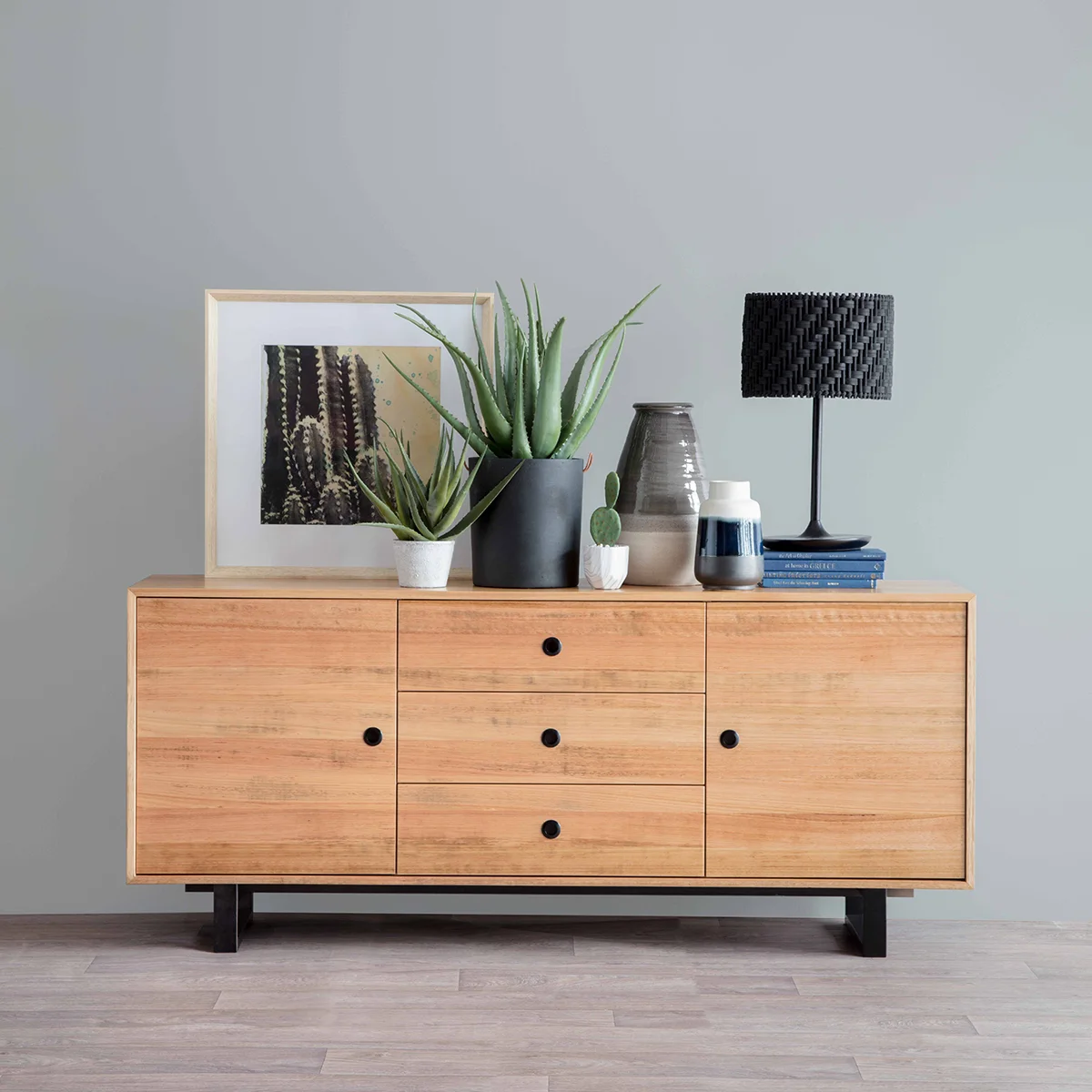 Natural timers and hints of black are also great ways to warm up spaces this winter, as evidenced here with the Finlay dining table, buffet and Amanda dining chairs. Add a splash of greenery in the form of plants, and you’ve got the perfect combination.